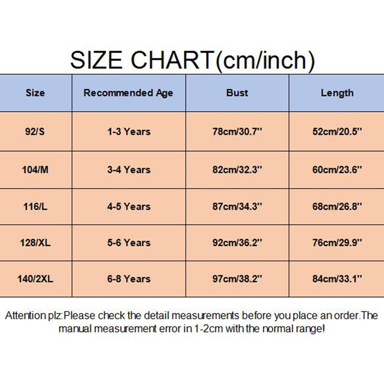 Size:140/2XL Recommended Age:6-8 Years Bust:97cm/38.2” Length:84cm/33.1”