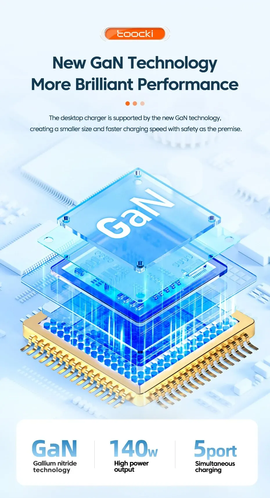 [New GaN Technology] More Brilliant Performance The desktop charger is supported by the new GaN technology, creating a smaller size and faster charging speed with safety as the premise.