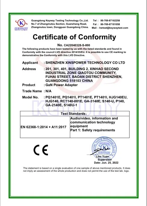 Type-C3 Output: 5V/3A; 9V/3A; 12V/3A; 15V/3A; 20V/5A(100W Max.)
