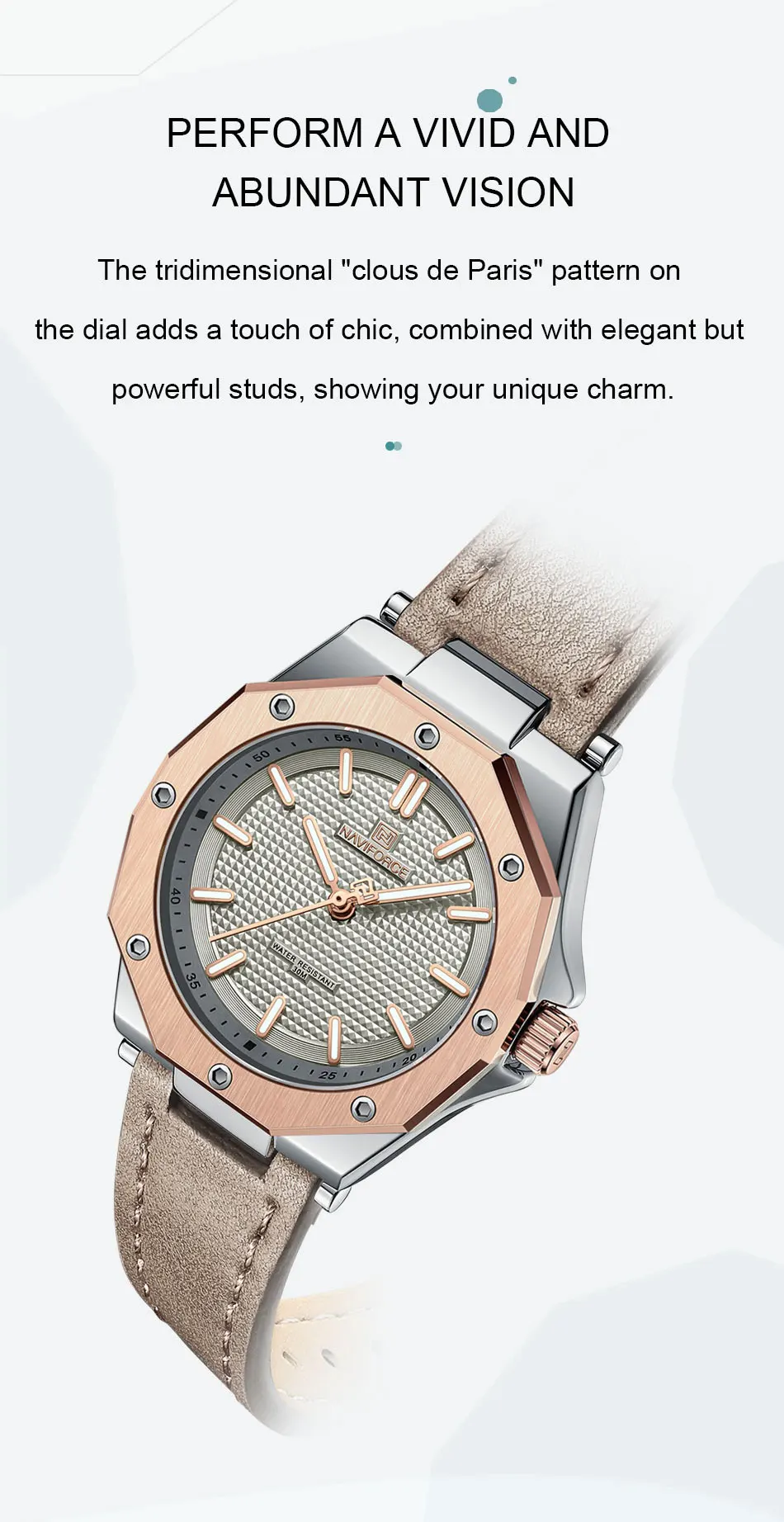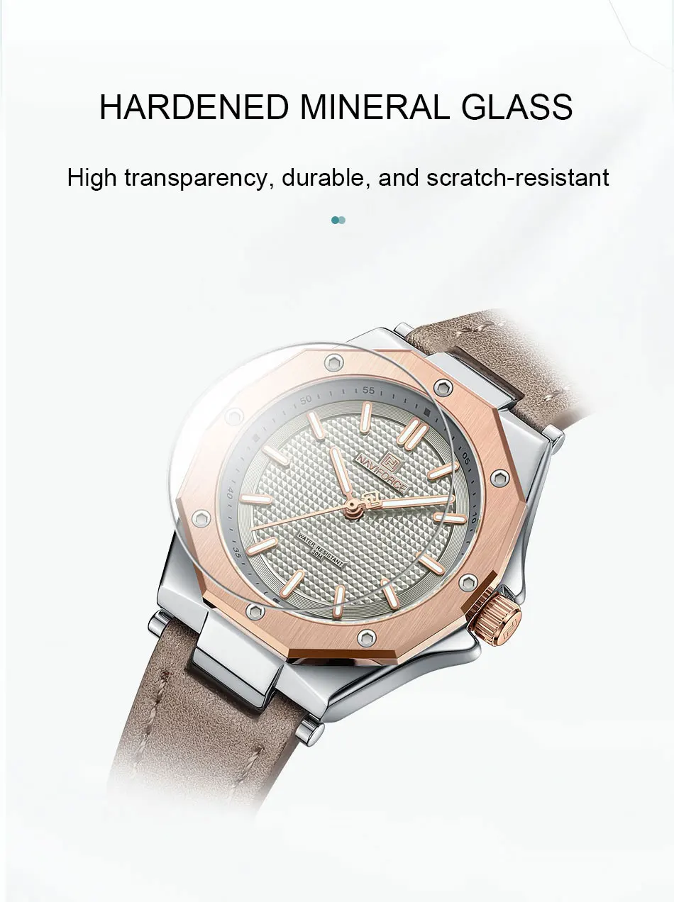 Top Luxury Brand NAVIFORCE Waterproof Leather Woman Watch Japanese Original Imported Movement Quartz Watch Ladies Fashion Clock