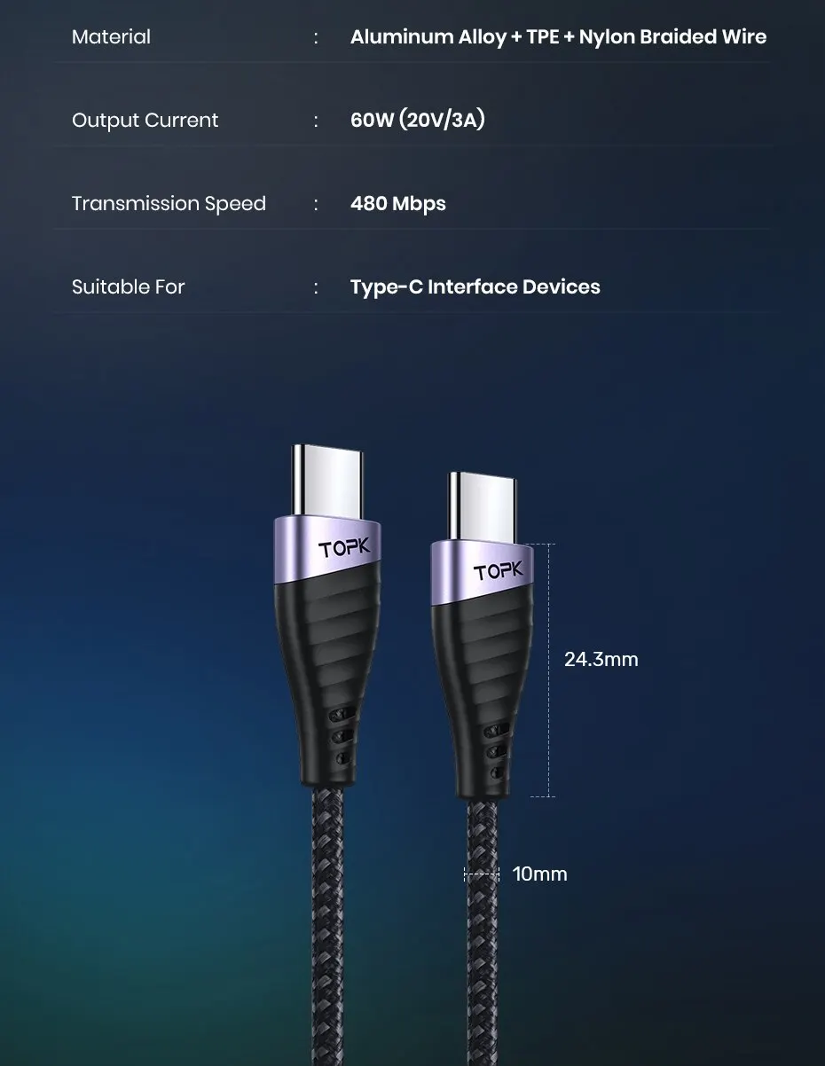 TOPK PD 60W USB C to USB Type C cable