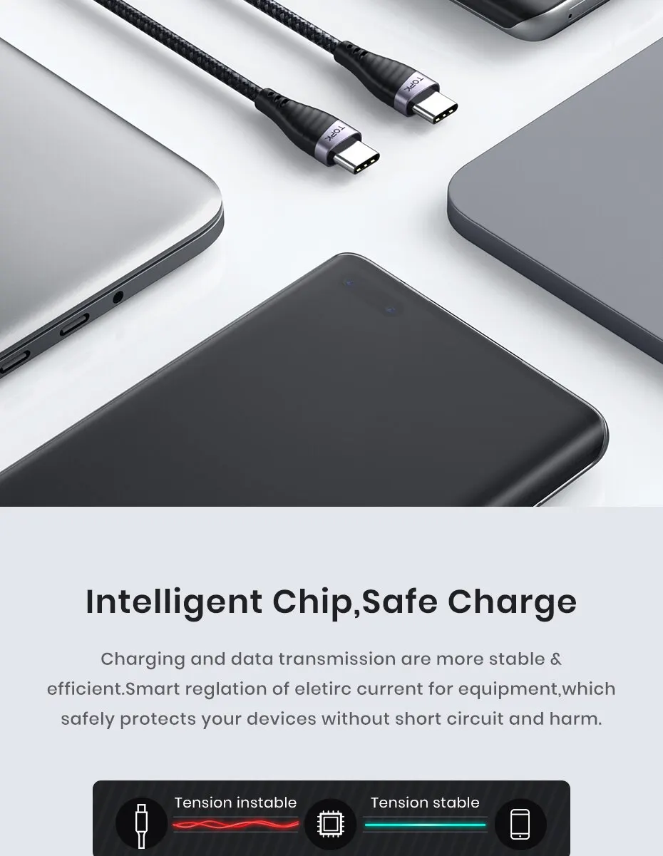 TOPK 60W USB C To Type C Cable PD Fast Charging Charger Cable Data Cord For Macbook Huawei Xiaomi POCO Samsung USB-C Cable