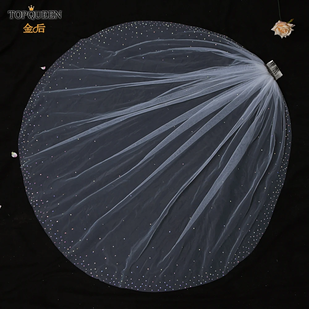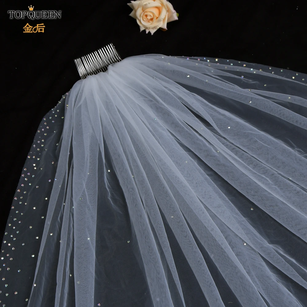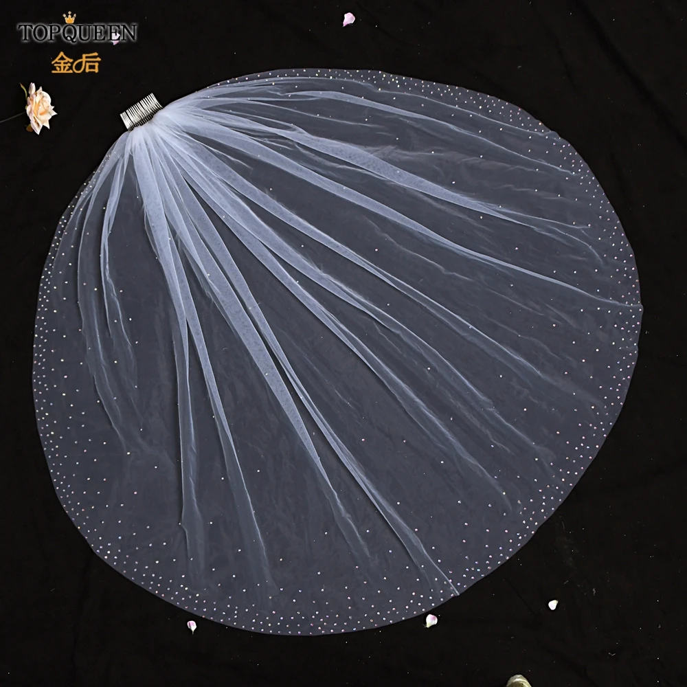 TOPQUEEN Shiny Rhinestone Edge Veil For Bridal Elegant Crystal Short Veil 1layer Ivory White Wedding Accessories With Comb V103