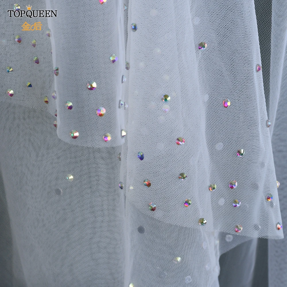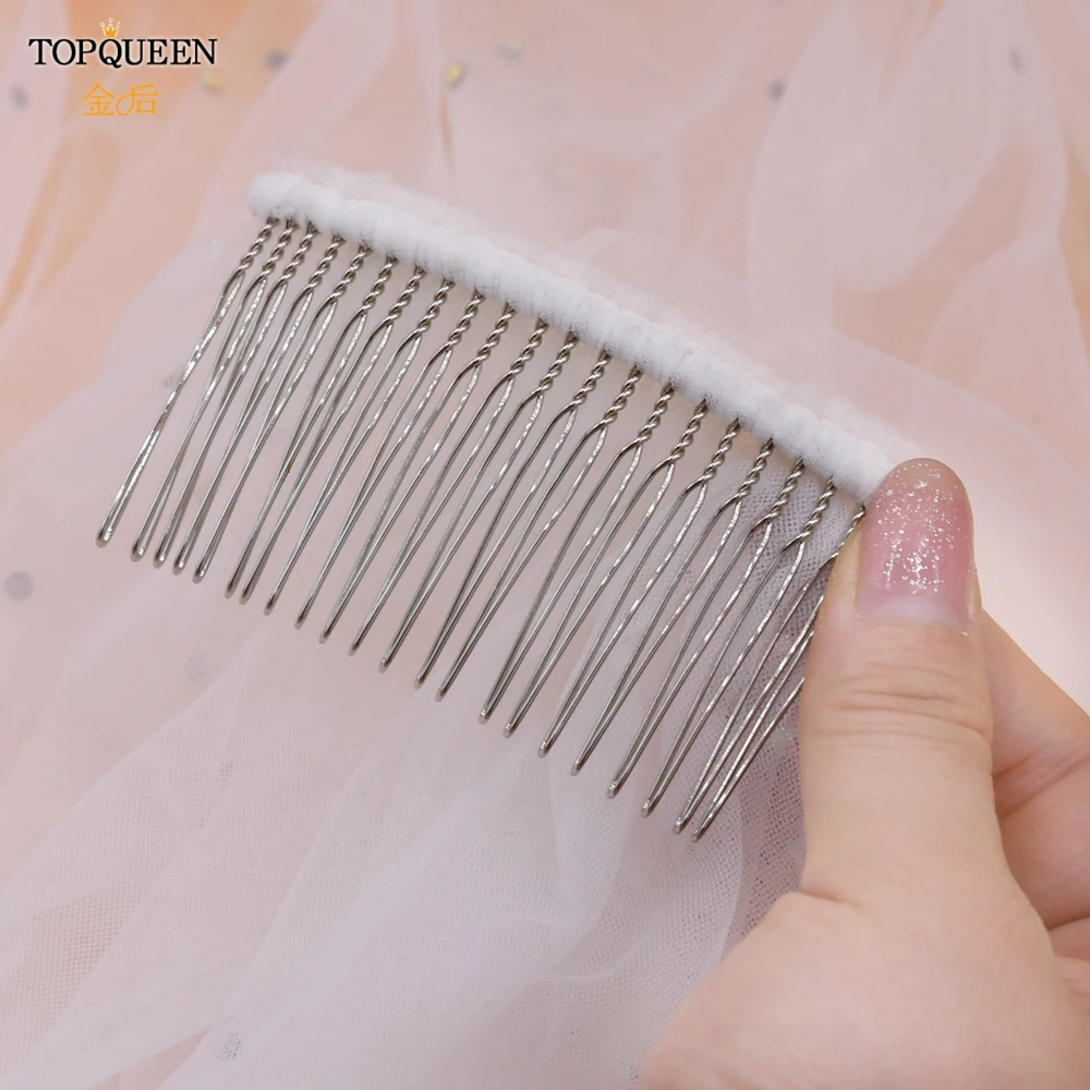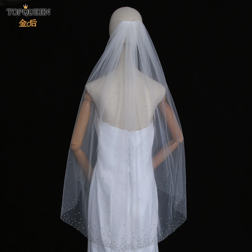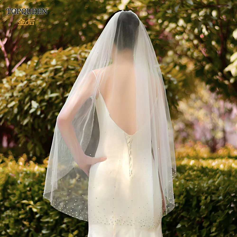 TOPQUEEN Shiny Rhinestone Edge Veil For Bridal Elegant Crystal Short Veil 1layer Ivory White Wedding Accessories With Comb V103
