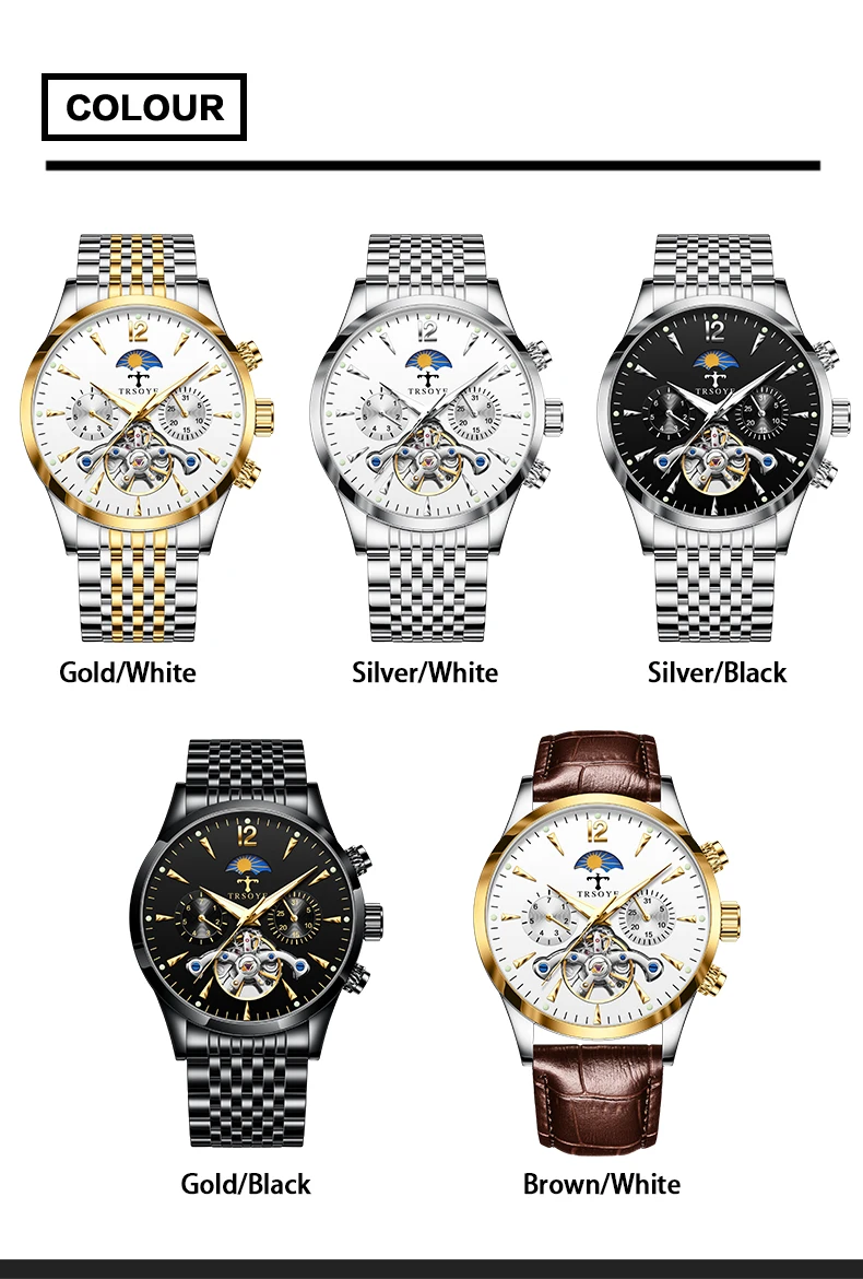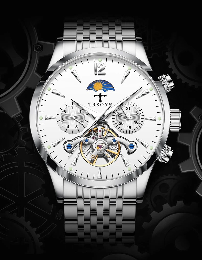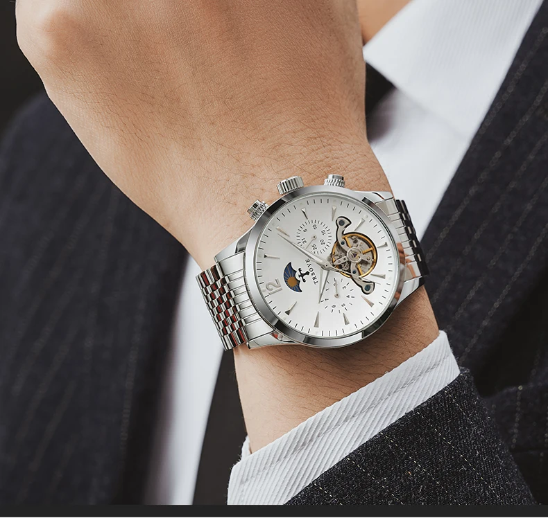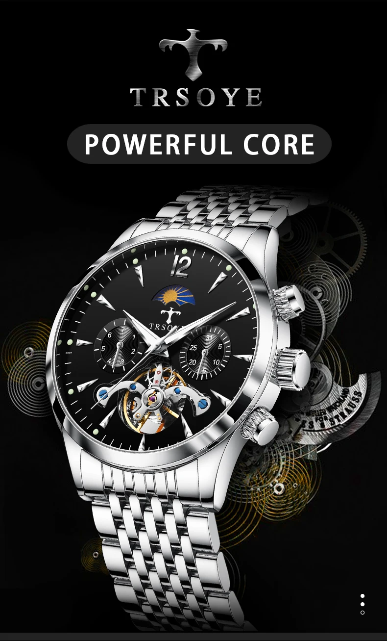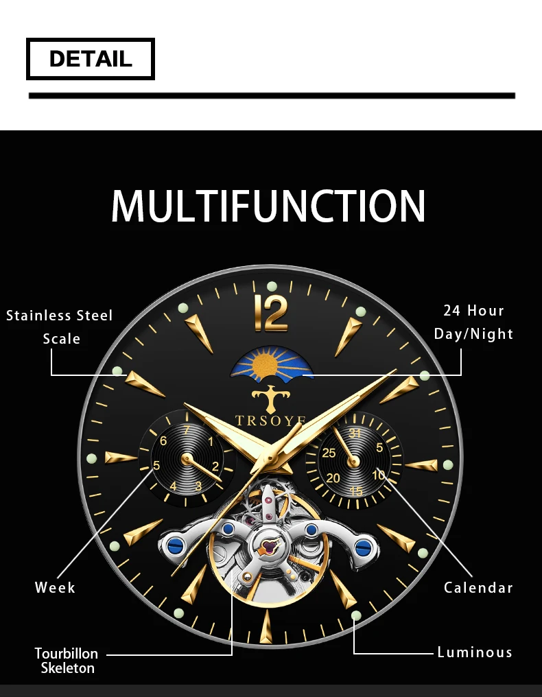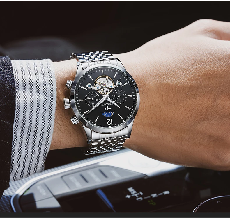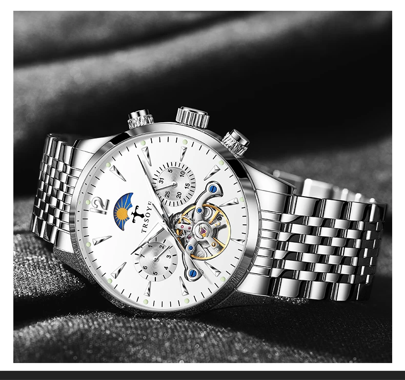 TRSOYE Fashion Tourbillon watch automatic mechanical Full Steel
