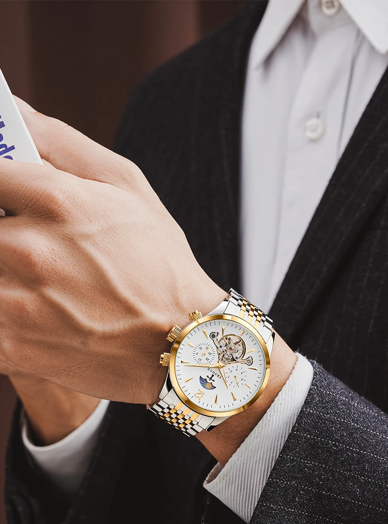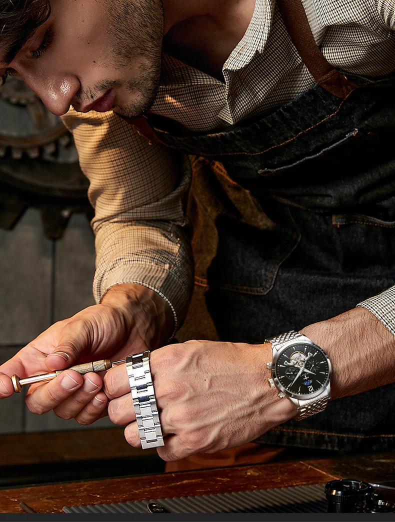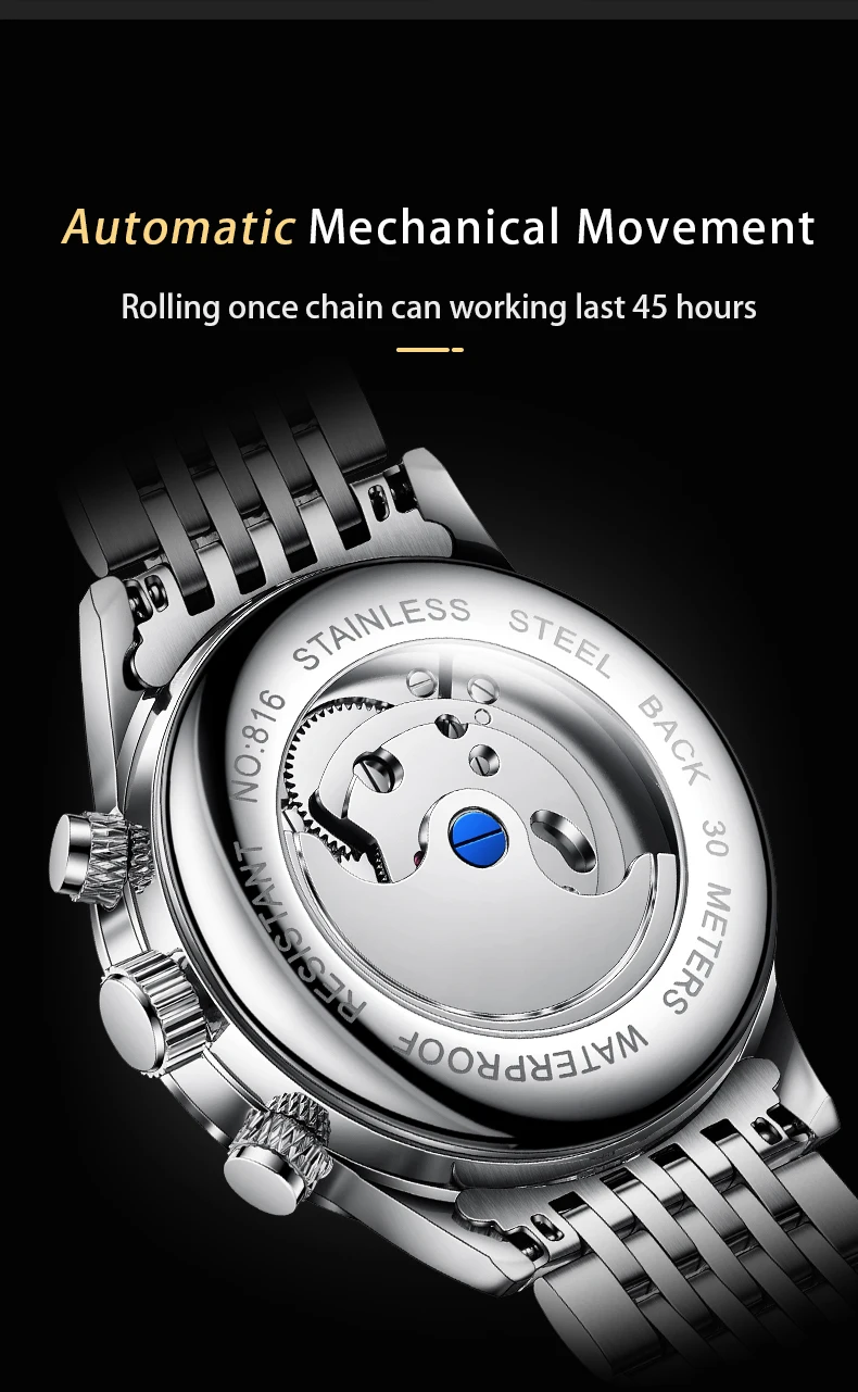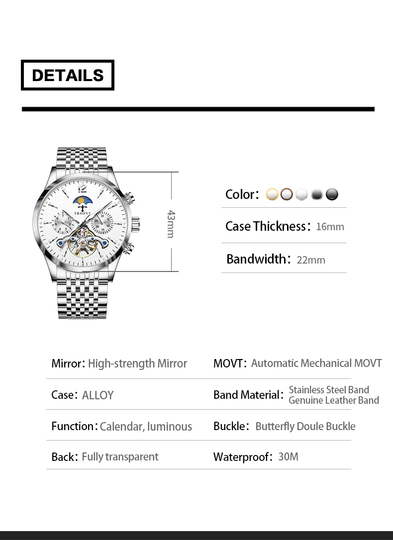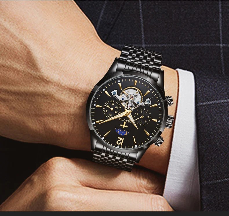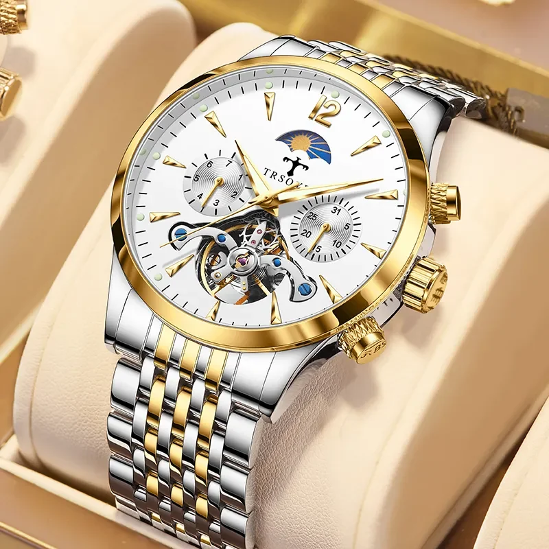 TRSOYE Fashion Tourbillon watch automatic mechanical Full Steel