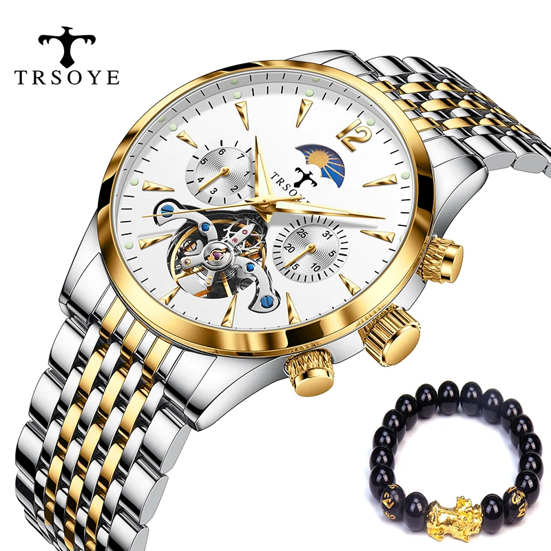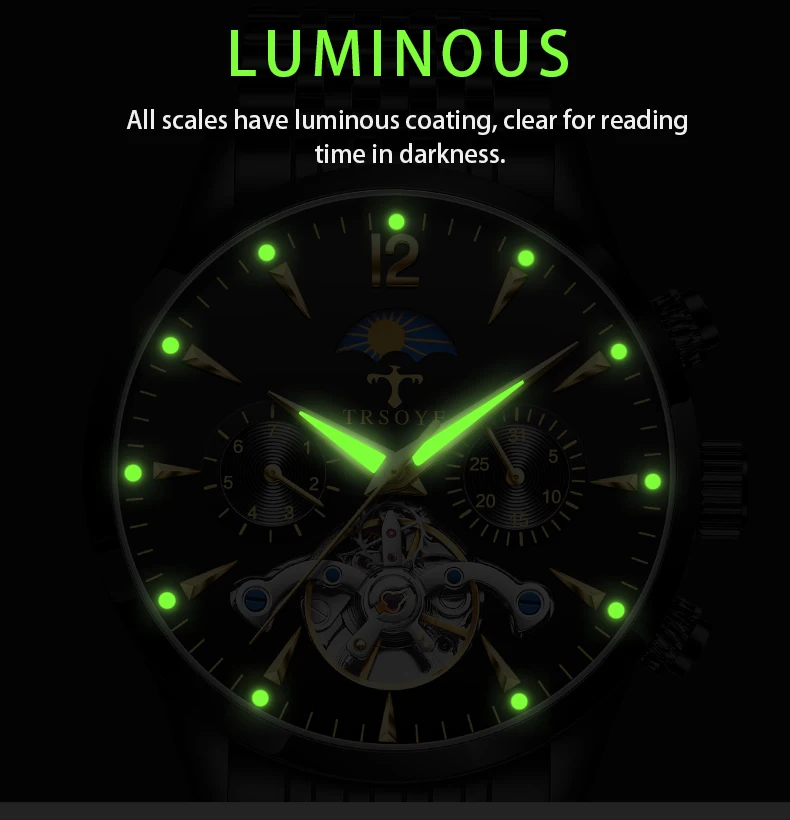 TRSOYE Full Stainless Steel Luminous Automatic Waterproof Watch For Men Tourbillon Gifts for boyfriend Bracelet