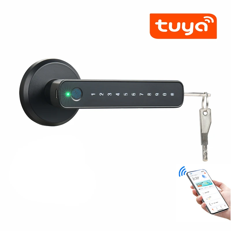 Tuya SmartLife APP Smart Fingerprint Password Single Latch Lock Dead Bolt For Indoor Home Wooden Metal Door