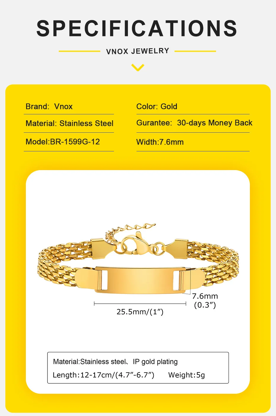 Vnox Personalized Baby Kids Name Bracelets, Gold Color Stainless Steel Mesh Band Wristband, Customized Gift To Newborns