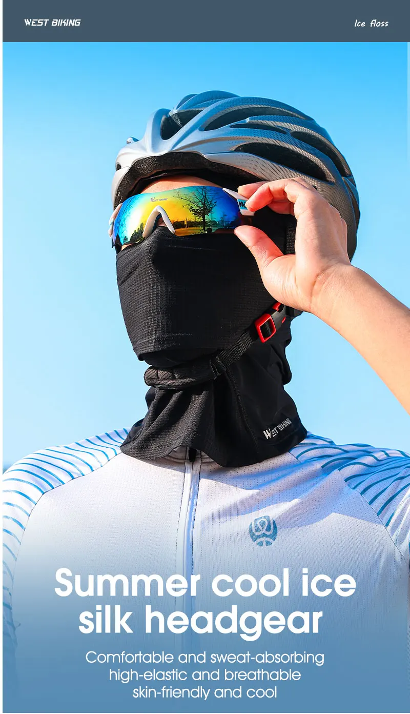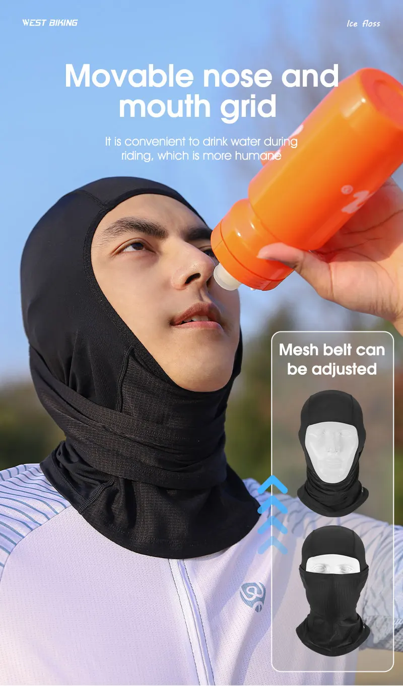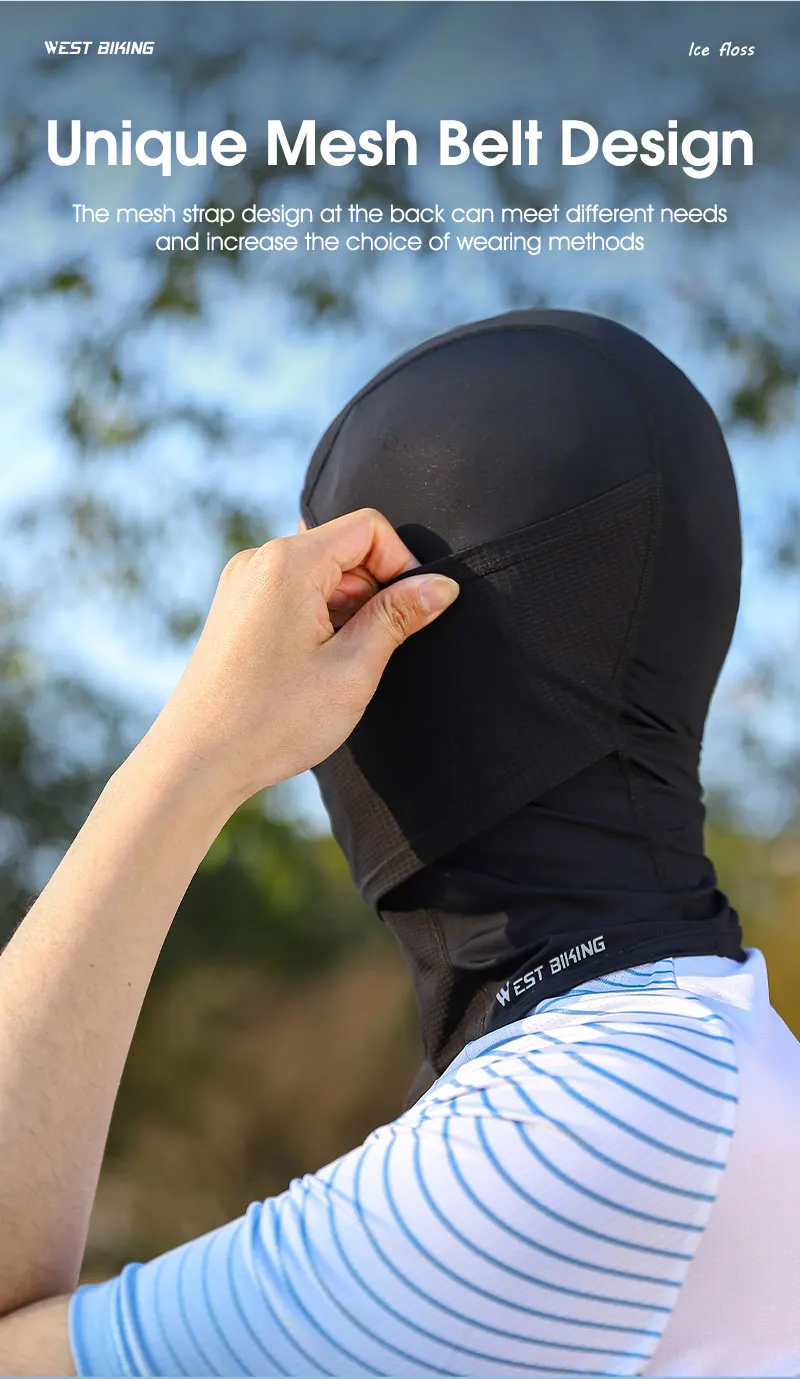 WEST BIING Summer Ice Silk Cycling Cap Sports Balaclava Sun UV Protection Breathable Bicycle Motorcycle Headwear