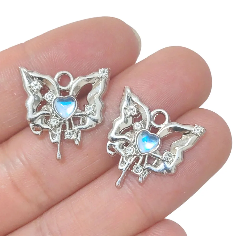 WZNB 10Pcs Alloy Butterfly Hearts Zircon Charms for Jewelry Making Earring Pendant Necklace Bracelet Accessories Diy Material