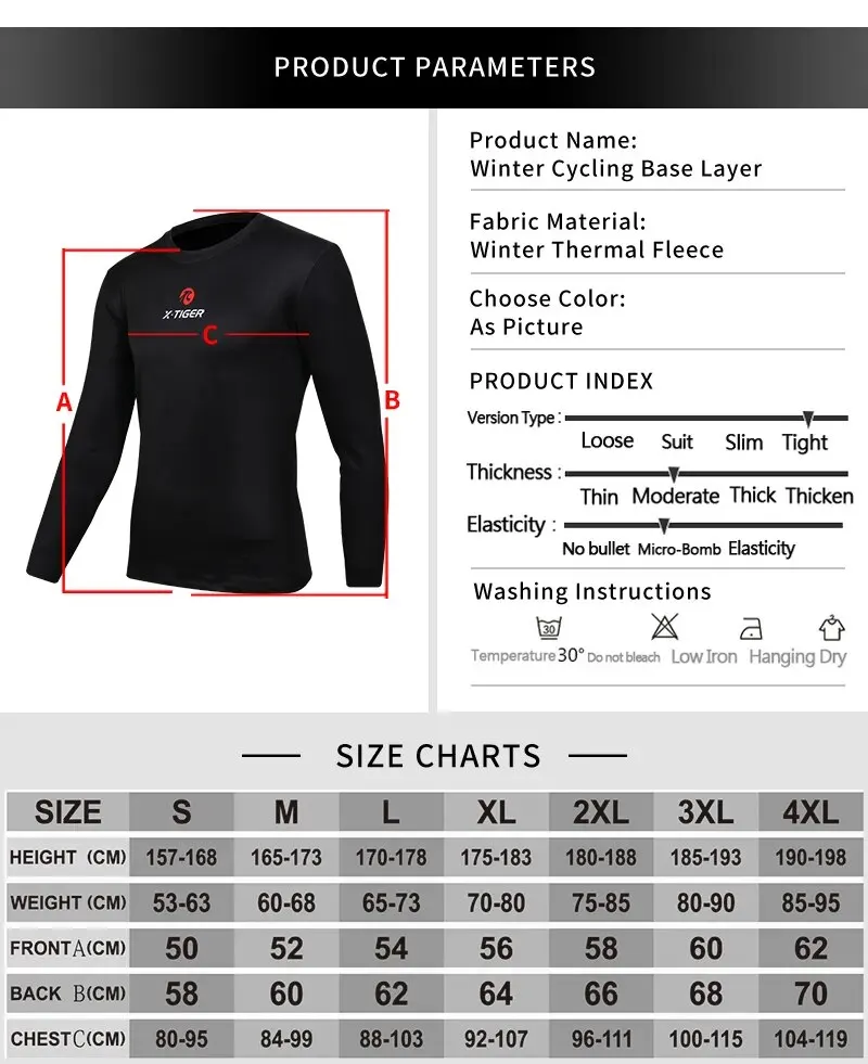 X-TIGER Winter Cycling Base Layer Long Sleeve Warm Bike Underwear Fleece Sports Bike Shirt For Keep Warm Racing Bicycle Shirt