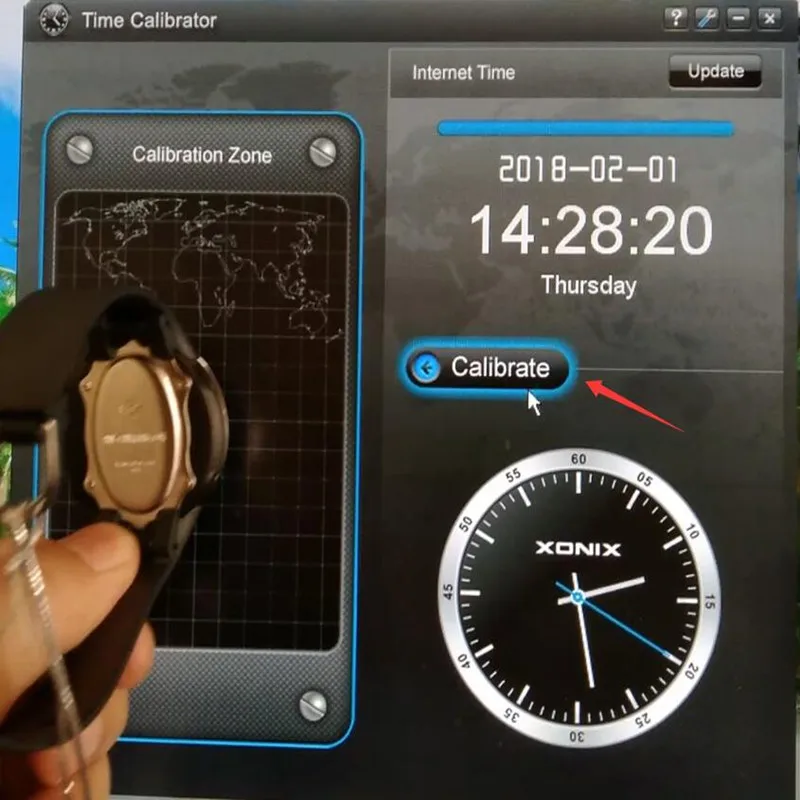 Key features: Self Calibrating time, alarm, water-resistant, luminous, multiple time zones, chronograph, stopwatch, complete calendar, auto date, LED display, diver