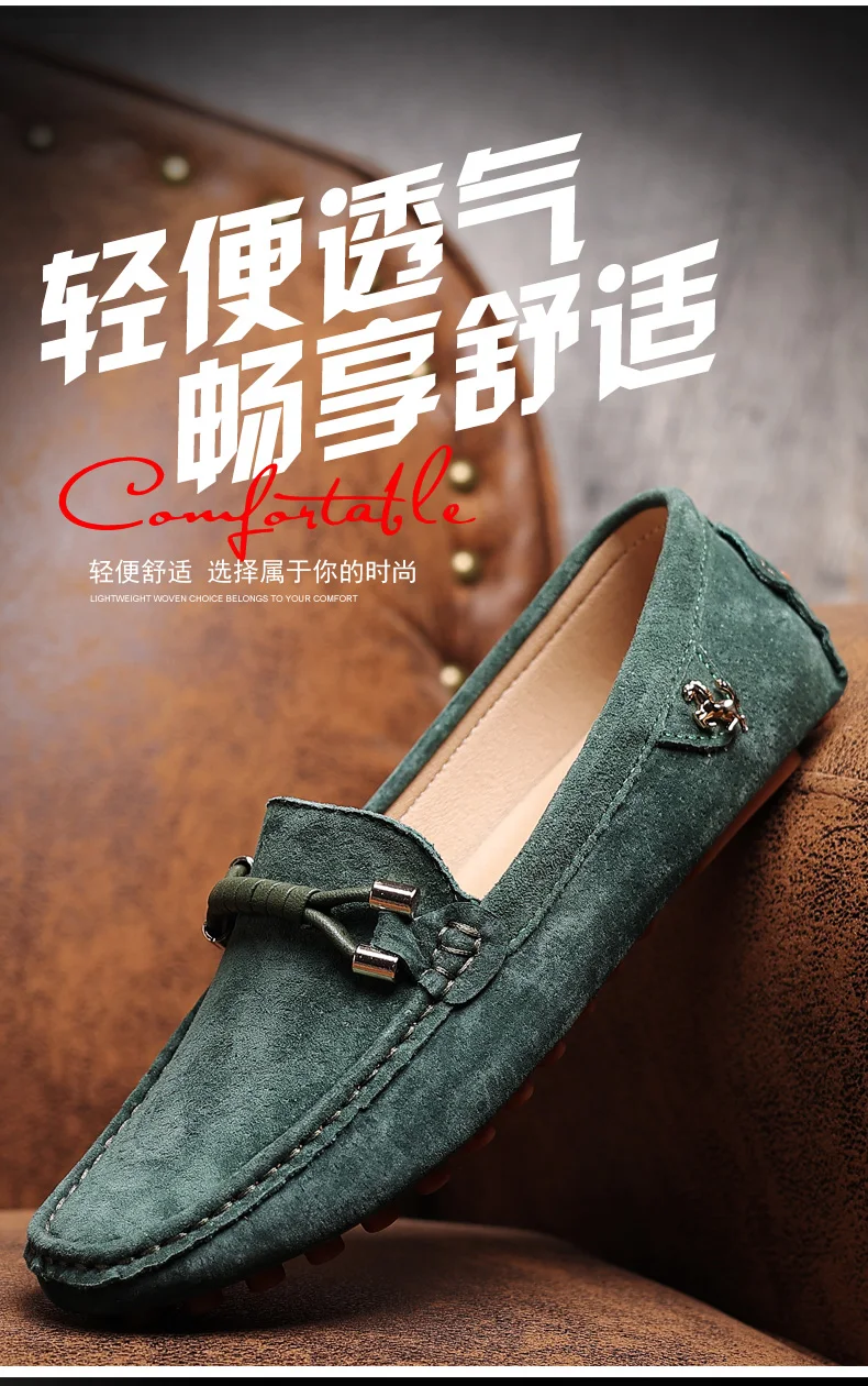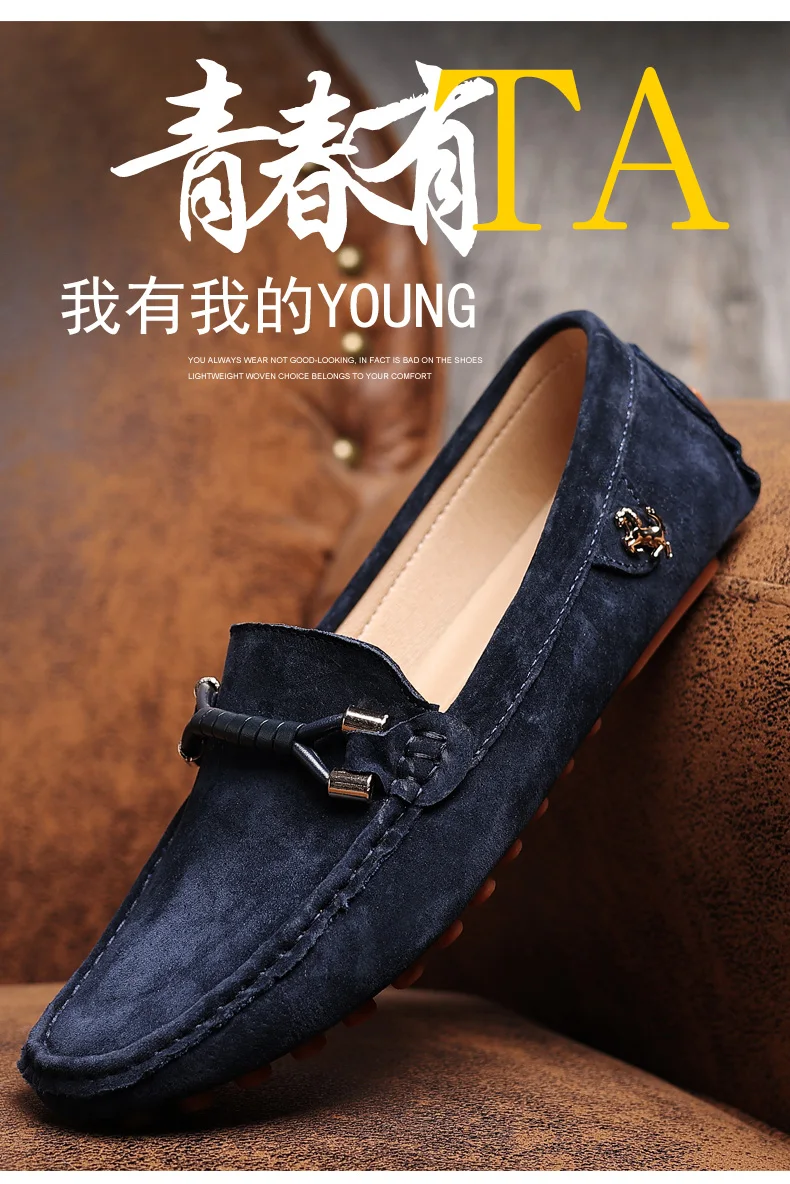 YRZL Loafers Men Casual Fashion Suede Men Shoes Lightweight Soft Genuine Leather Moccasins Slip on Driving Shoes for Men Size 48